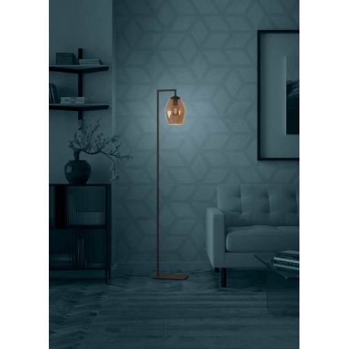 Lampadar ESTANYS 1 390255, H1715 mm, Ø190 mm, E27, 1X40W, oțel negru, sticlă