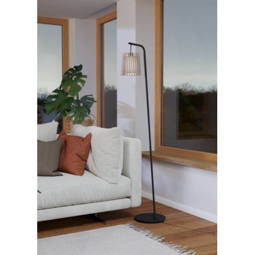 Lampadar FATTORIA 900905, H1700 mm, E27, 1X25W, IP20, oțel negru, lemn, textil natural, alb