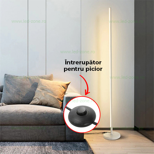Lampadarul cu tehnologie LED este potrivit pentru iluminat decorativ. Acest model are pe cablul de alimentare intrerupator de podea pentru acces usor cu piciorul.