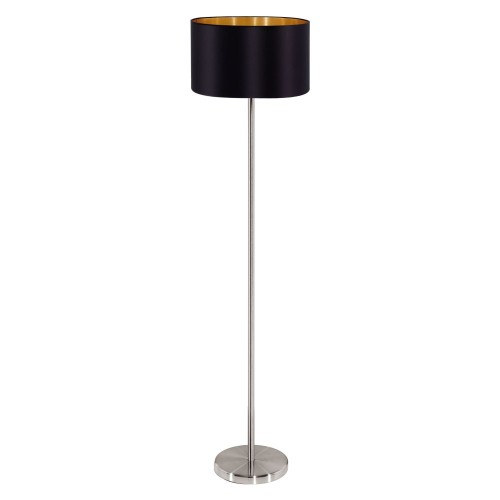 Lampadar MASERLO 95169, H1510 mm, Ø380 mm, E27, 1X60W, IP20, oțel nichel mat, textil negru, auriu