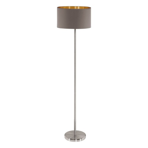 Lampadar MASERLO 95172, H1510 mm, Ø380 mm, E27, 1X60W, IP20, oțel nichel mat, textil cappuccino, auriu