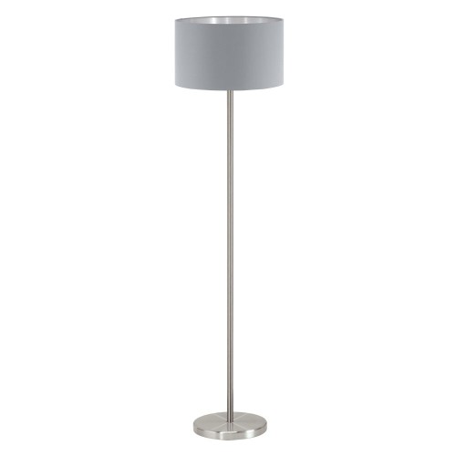 Lampadar MASERLO 95173, H1510 mm, Ø380 mm, E27, 1X60W, IP20, oțel nichel mat, textil gri, argintiu