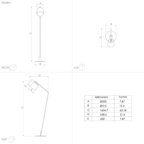 Lampadar ONEDA 900394, H1605 mm, E27, 1X40W, IP20, oțel, negru, alb