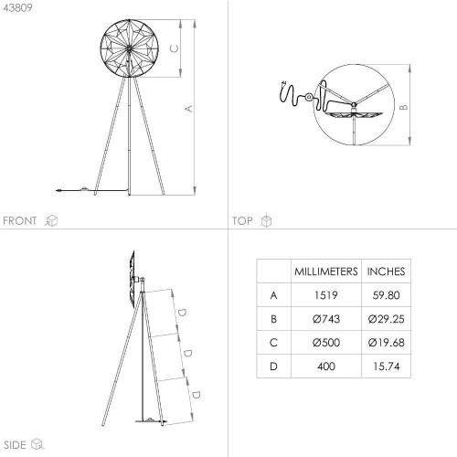 Lampadar vintage CASTANUELO 43809, H1520 mm, E27, 1X40W, IP20, oțel, negru, auriu