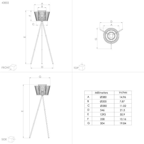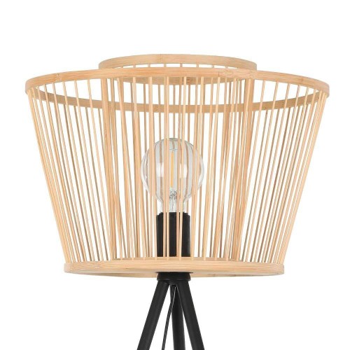 Lampadar vintage HYKEHAM 43855, H1295 mm, Ø380 mm, E27, 1X40W, IP20, oțel negru, lemn natural