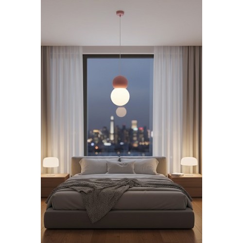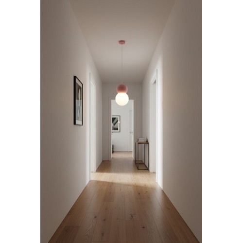 Lustra suspendată cu 1 bec E27 este o piesă de iluminat placuta, ideală pentru spații generoase precum livinguri, dormitoare. Cu un design simplist și finisaj roz, adaugă un plus de culoare incaperii.