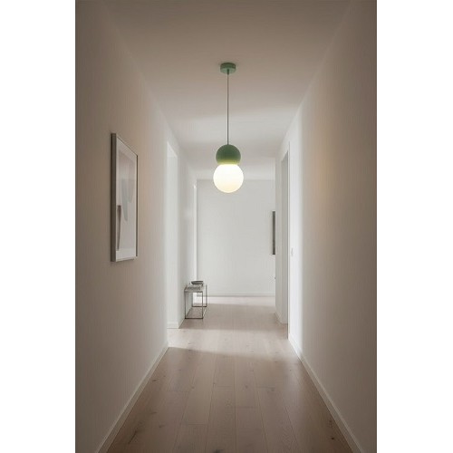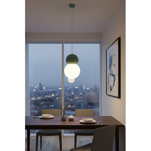 Lustra suspendată cu 1 bec E27 este o piesă de iluminat placuta, ideală pentru spații generoase precum livinguri, dormitoare. Cu un design simplist și finisaj verde, adaugă un plus de culoare incaperii.