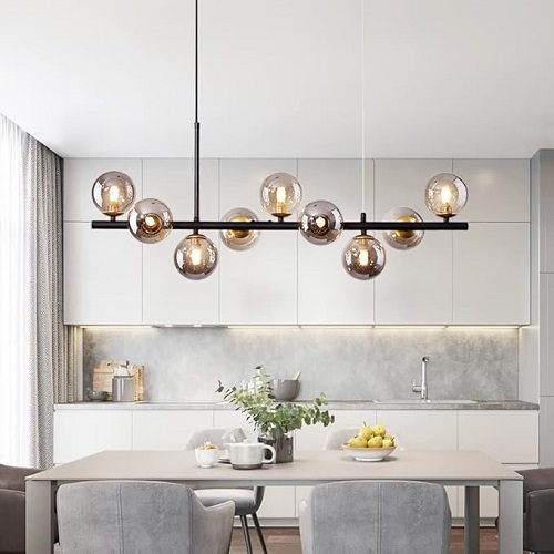Lustra 11 globuri cu sticla fumurie si socluri G9 model LZ2414-11 este o alegere elegantă pentru interioare moderne. Cu un design contemporan în finisaj negru, se integrează ușor în living, dining sau chiar spații comerciale cu stil. Structura sa are dimensiunile de 300×1100x800 mm, ceea ce o face potrivită pentru a fi montată deasupra unei mese sau în centrul unei încăperi, devenind un element de atracție vizuală.