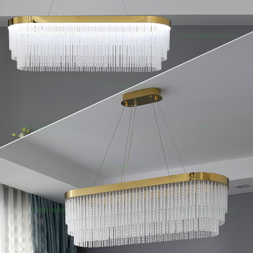 Lustra eleganta LZ3033 imbina rafinamentul designului clasic cu tehnologia moderna LED, oferind o iluminare spectaculoasa si eficienta. Cu o putere de 130W si LED-uri SMD performante, aceasta asigura un flux luminos intens, de 60–80 lm/W, potrivit atat pentru spatii rezidentiale, cat si comerciale. Functiile reglabile prin telecomanda permit selectarea temperaturii de culoare – alb cald, natural sau rece (3000K / 4000K / 6500K) – in functie de atmosfera dorita. Structura sa din metal auriu si elemente din cristal confera un aspect luxos, iar durata de viata de peste 20.000 de ore garanteaza utilizarea indelungata.
