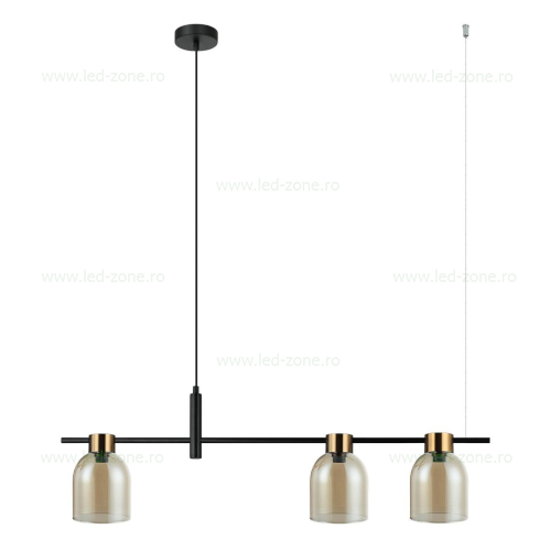 Lustră cu 3 Socluri E27 LZ9722-3, Metal și Sticlă, Negru, 870x110x1000 mm
