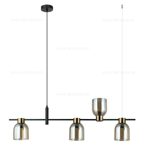 Lustră cu 4 Socluri E27 LZ9722-4, Metal și Sticlă, Negru, 1080x110x1000 mm