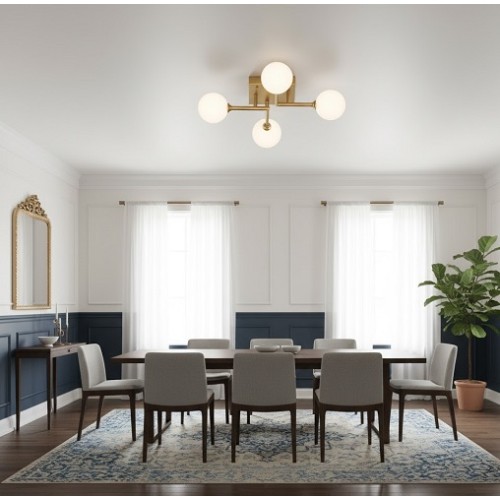 Adauga un plus de eleganta si modernitate locuintei tale cu lustra LZ06-4, prevazuta cu 4 globuri mate cu socluri E27, ideala pentru iluminarea eficienta a spatiilor interioare.