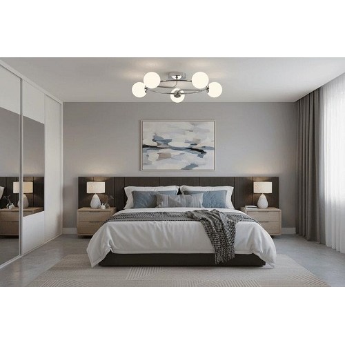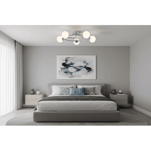 Adauga rafinament si lumina calda spatiului tau cu lustra LZ6655-5, un model cu 5 globuri si design modern-clasic, perfect pentru living, dining, hol sau dormitor. Structura metalica argintie, combinata cu globurile din sticla, ofera un aspect sofisticat si versatil.