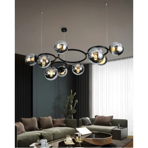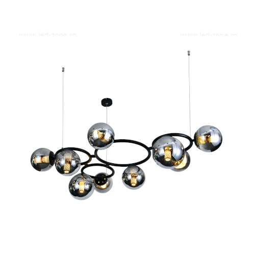 Descriere Lustra 9 Socluri E27 Negru/Crom LZ6805-9