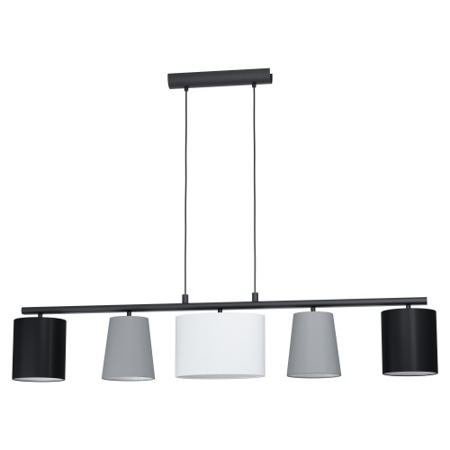 Lustră ALMEIDA 1 98588, E14, 5X25W, IP20, oțel negru, textil, negru, gri, alb
