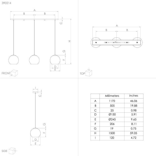 Lustră ARANGONA 390214, E27, 3X40W, IP20, oțel, negru, sticlă