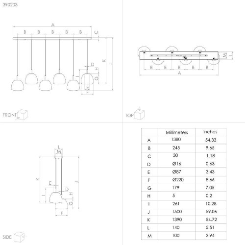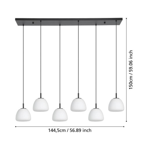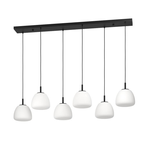 Lustră BALMES 390203, E27, 6X40W, IP20, oțel negru, sticlă opal mat, alb