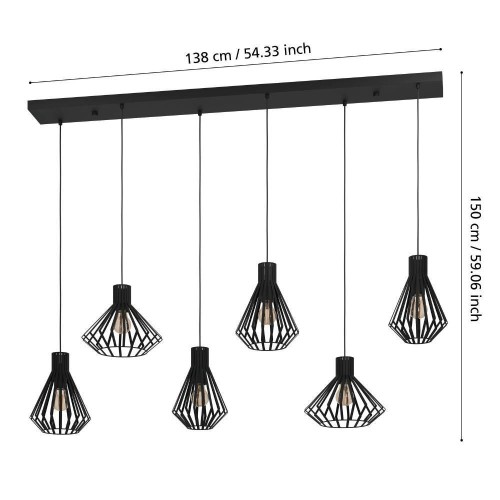 Lustră BASIDANO 390126, E27, 6X40W, IP20, oțel, negru