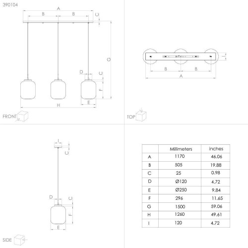 Lustră BULCIAGO 390104, E27, 3X40W, IP20, oțel negru, sticlă aburită, negru transparent