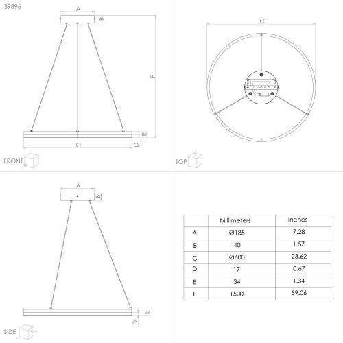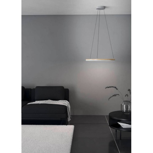 Lustră CADINARO 39896, Ø600 mm, LED, 36W, 3000K, IP20, oțel, lemn gri, maro, plastic alb