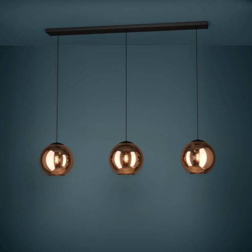 Lustră CORDOBA 390095, E27, 3X40W, IP20, oțel negru, sticlă aburită, culoarea cuprului