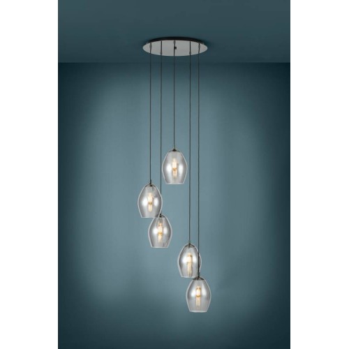 Lustră ESTANYS 39567, Ø580 mm, E27, 5X60W, IP20, oțel nichel nero, sticlă aburită negru transparent