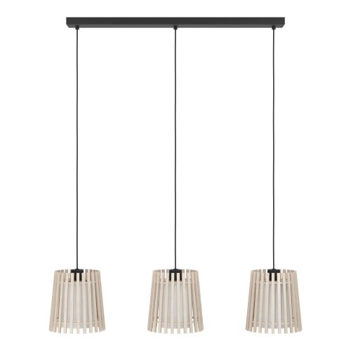 Lustră FATTORIA 900903, E27, 3X25W, IP20, oțel negru, lemn, textil, natural, alb