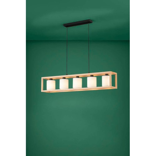 Lustră GRANADOS 390102, E27, 5X25W, IP20, oțel, lemn negru, maro, textil, alb