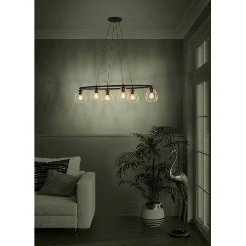 Lustră JAZMINIA 1 390092, E27, 6X40W, IP20, oțel, negru, alamă