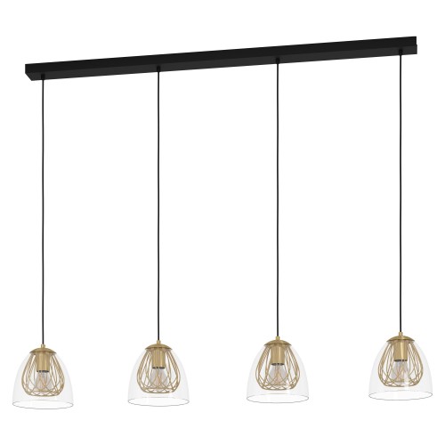 Lustră JAZMINIA 390038, E27, 4X40W, IP20, oțel negru, alamă, sticlă, transparentă
