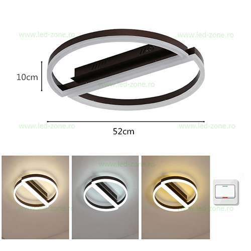 Lustra cu LED 3 functii va permite schimbarea din telecomanda sau telefon a nuantelor de lumina intre alb cald, alb natural si alb rece si a intensitatii luminii (dimabil).