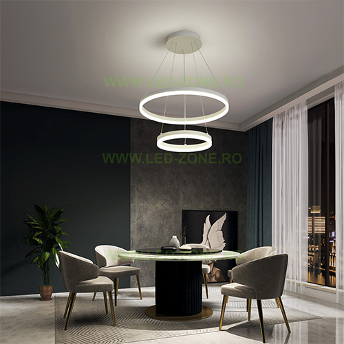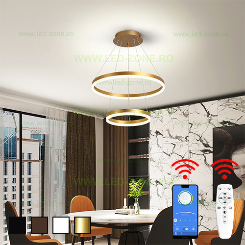 Lustra cu LED 3 functii va permite schimbarea din telecomanda sau telefon a nuantelor de lumina intre alb cald, alb natural si alb rece si a intensitatii luminii (dimabil).