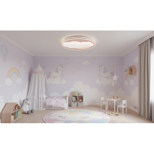 Designul modern include elemente decorative în formă de nori, creând o atmosferă plăcută și relaxantă, potrivită pentru spațiile destinate copiilor.