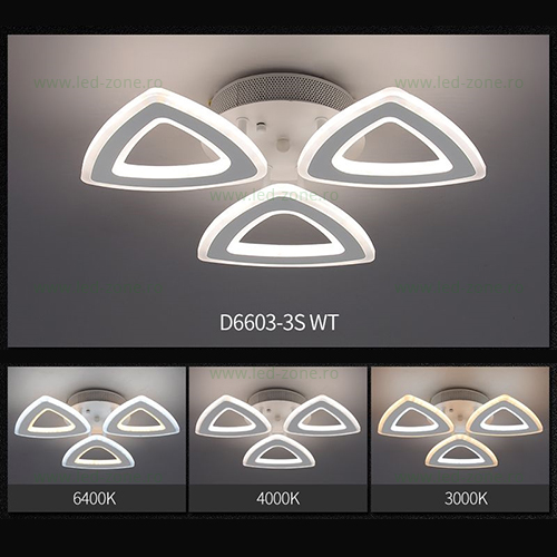 Lustra cu LED 3 functii va permite schimbarea din telecomanda a nuantelor de lumina intre alb cald, alb natural si alb rece si a intensitatii luminii (dimabil).