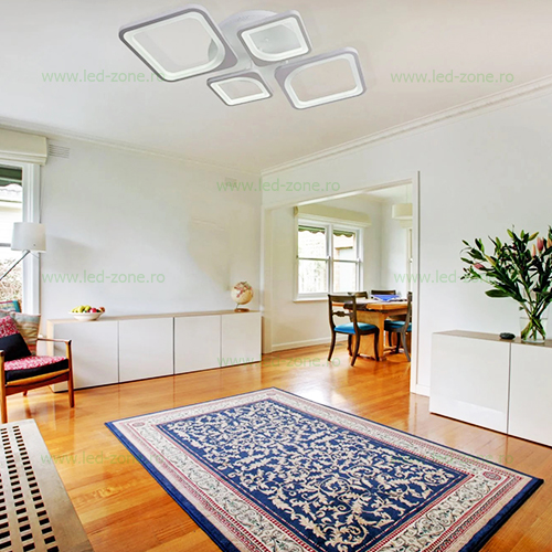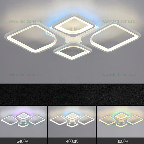 Lustra cu LED 3 functii va permite schimbarea din telecomanda sau telefon a nuantelor de lumina intre alb cald, alb natural si alb rece si a intensitatii luminii (dimabil).