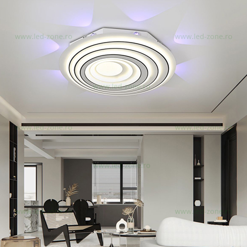 Lustra cu LED 3 functii va permite schimbarea din telecomanda a nuantelor de lumina intre alb cald, alb natural si alb rece si a intensitatii luminii (dimabil).