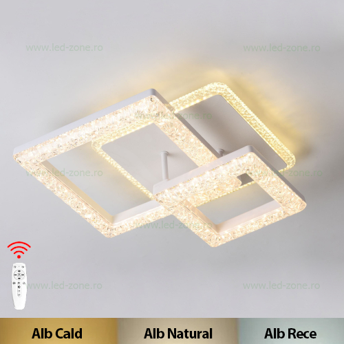 Lustra cu LED 3 functii va permite schimbarea din telecomanda a nuantelor de lumina intre alb cald, alb natural si alb rece si a intensitatii luminii (dimabil).