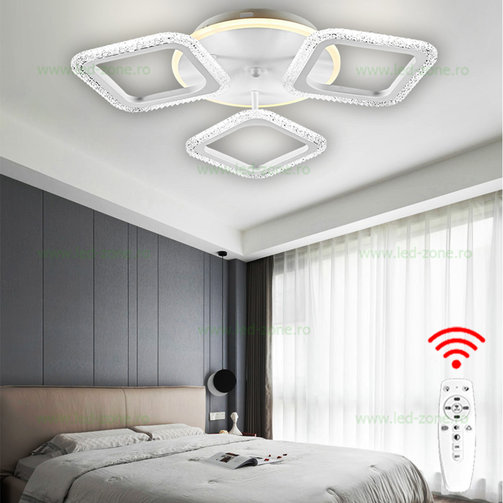 Lustra cu LED 3 functii va permite schimbarea din telecomanda a nuantelor de lumina intre alb cald, alb natural si alb rece si a intensitatii luminii (dimabil).
