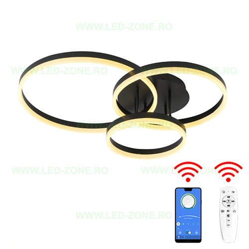 Lustra cu LED 3 functii va permite schimbarea din telecomanda sau telefon a nuantelor de lumina intre alb cald, alb natural si alb rece si a intensitatii luminii (dimabil).