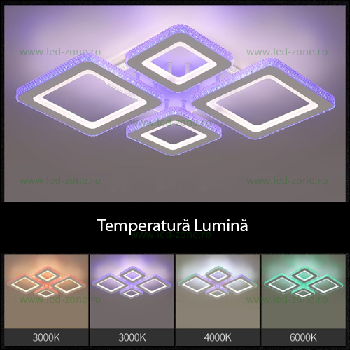 Lustra cu LED 3 functii va permite schimbarea din telecomanda a nuantelor de lumina intre alb cald, alb natural, alb rece si rgb si a intensitatii luminii (dimabil).