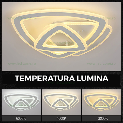 Lustra cu LED 3 functii va permite schimbarea din telecomanda sau telefon a nuantelor de lumina intre alb cald, alb natural si alb rece si a intensitatii luminii (dimabil).