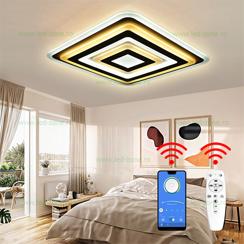 Lustra cu LED 3 functii va permite schimbarea din telecomanda sau telefon a nuantelor de lumina intre alb cald, alb natural si alb rece si a intensitatii luminii (dimabil).