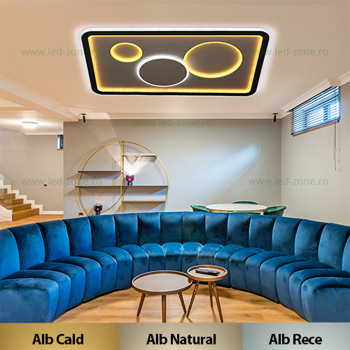 Lustra cu LED 3 functii va permite schimbarea din telecomanda a nuantelor de lumina intre alb cald, alb natural si alb rece si a intensitatii luminii (dimabil).