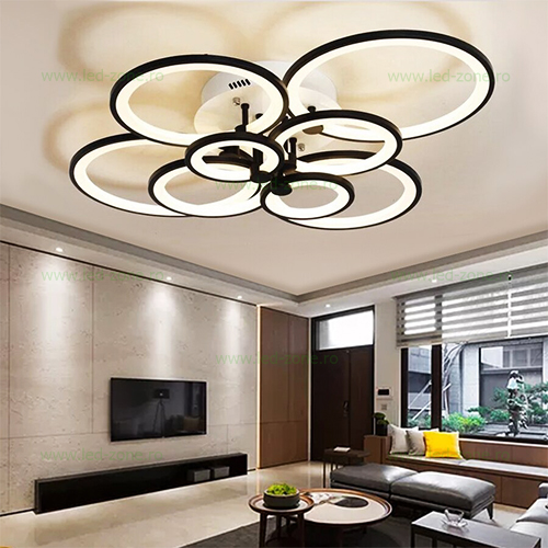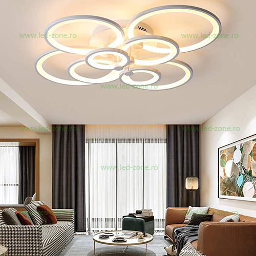 Lustra cu LED 3 functii va permite schimbarea din telecomanda sau telefon a nuantelor de lumina intre alb cald, alb natural si alb rece si a intensitatii luminii (dimabil).