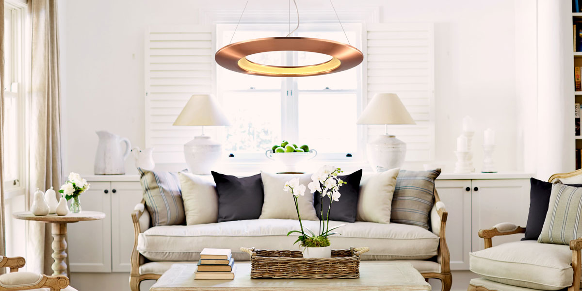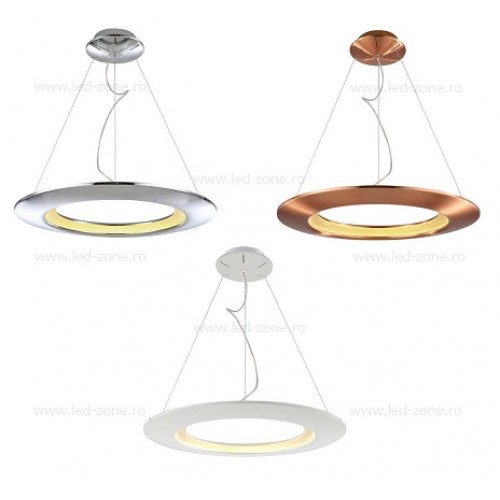 Lustra LED rotunda suspendata ofera lumina Alb Natural, are diverse culori (alb, cupru, argintiu) si design modern.