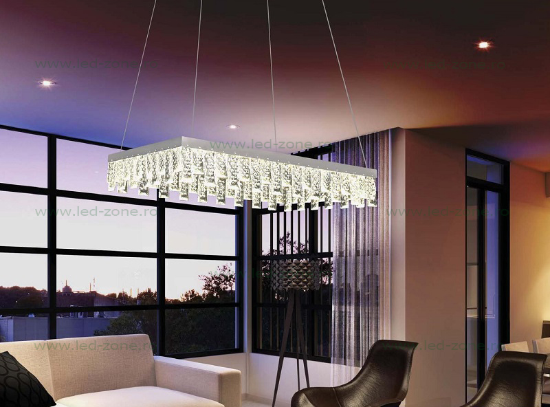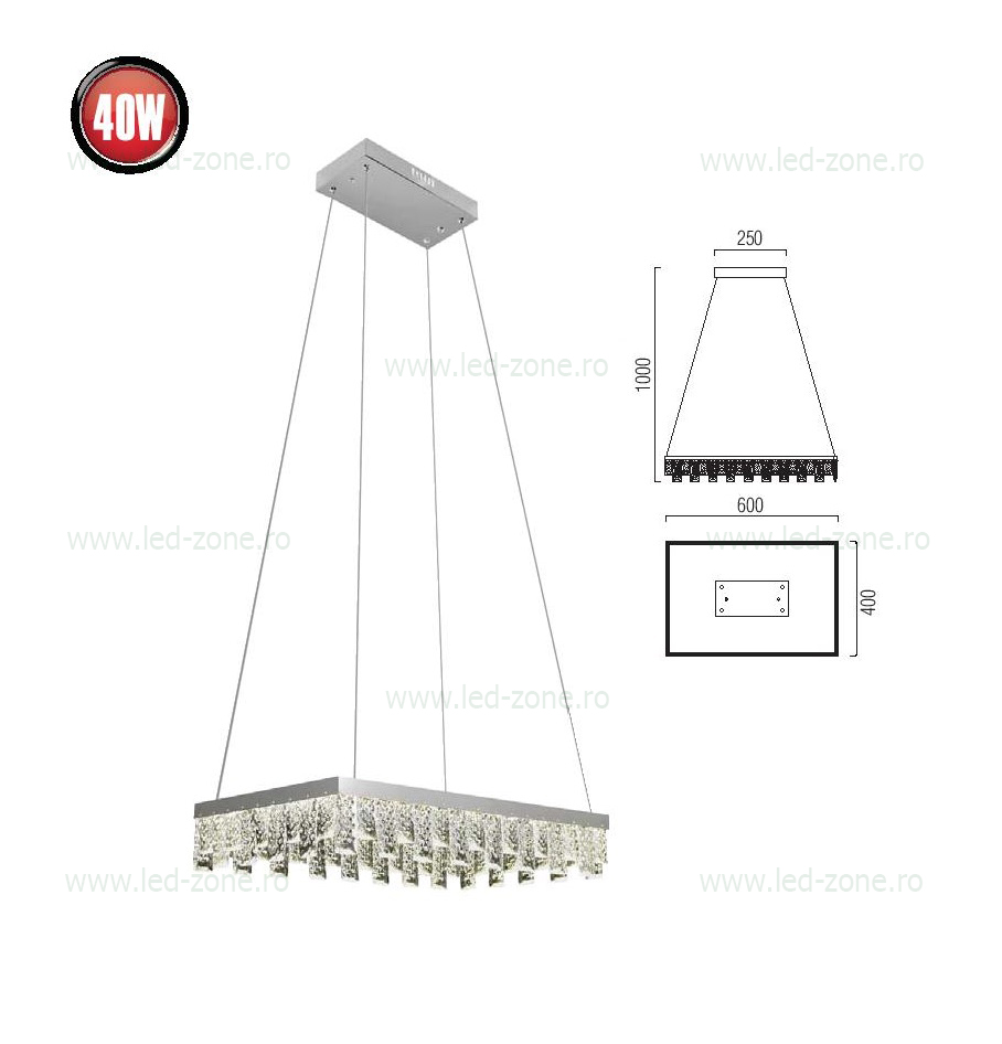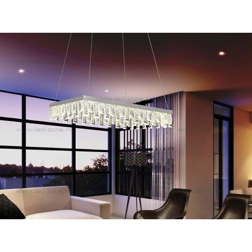 Lustra LED 1 segment cu putere 40w model Cristal, suspendata, are un design modern si ofera o lumina ambientala Alb Natural.