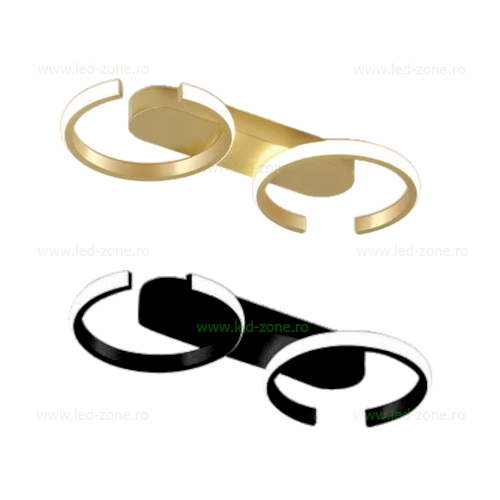 Lustră modernă aplicată, cu design elegant în finisaj auriu și negru. Carcasa sa combină forme geometrice contemporane cu detalii rafinate, potrivindu-se perfect într-un decor actual. Este echipată cu telecomandă care permite controlul a trei funcții: reglarea intensității luminii, schimbarea temperaturii de culoare (rece, caldă, naturală) și activarea modului de iluminare nocturnă. Ideală pentru living, dormitor sau birou, oferă un echilibru între funcționalitate și estetică moderna.