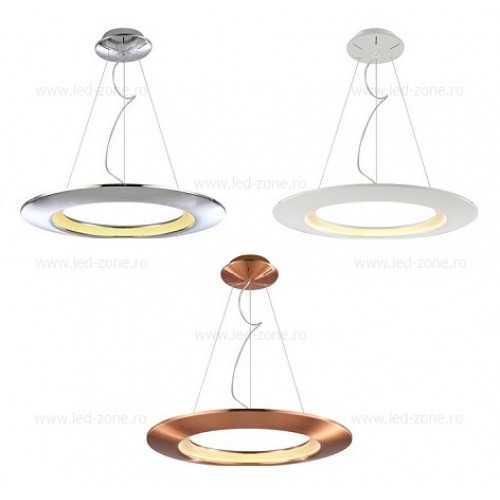 Lustra LED rotunda suspendata ofera lumina Alb Natural, are diverse culori (alb, cupru, argintiu) si design modern.