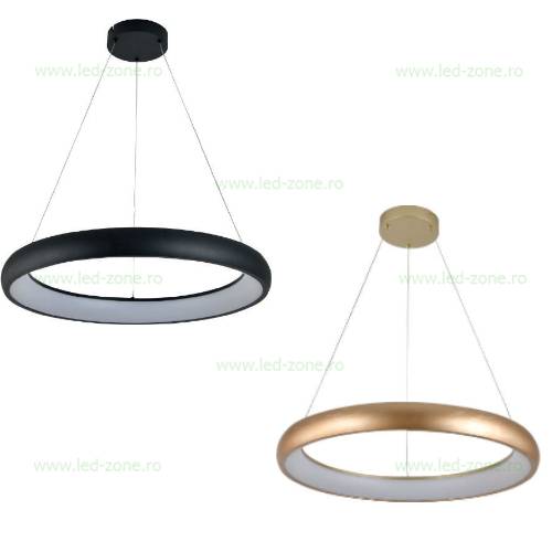 Lustra LED rotunda suspendata ofera lumina Alb Natural, are diverse culori (auriu si negru) si design modern.