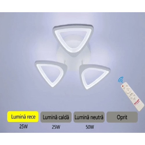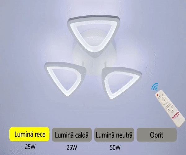 Lustra cu LED 3 functii va permite schimbarea din telecomanda a nuantelor de lumina intre alb cald, alb natural si alb rece si a intensitatii luminii (dimabil).